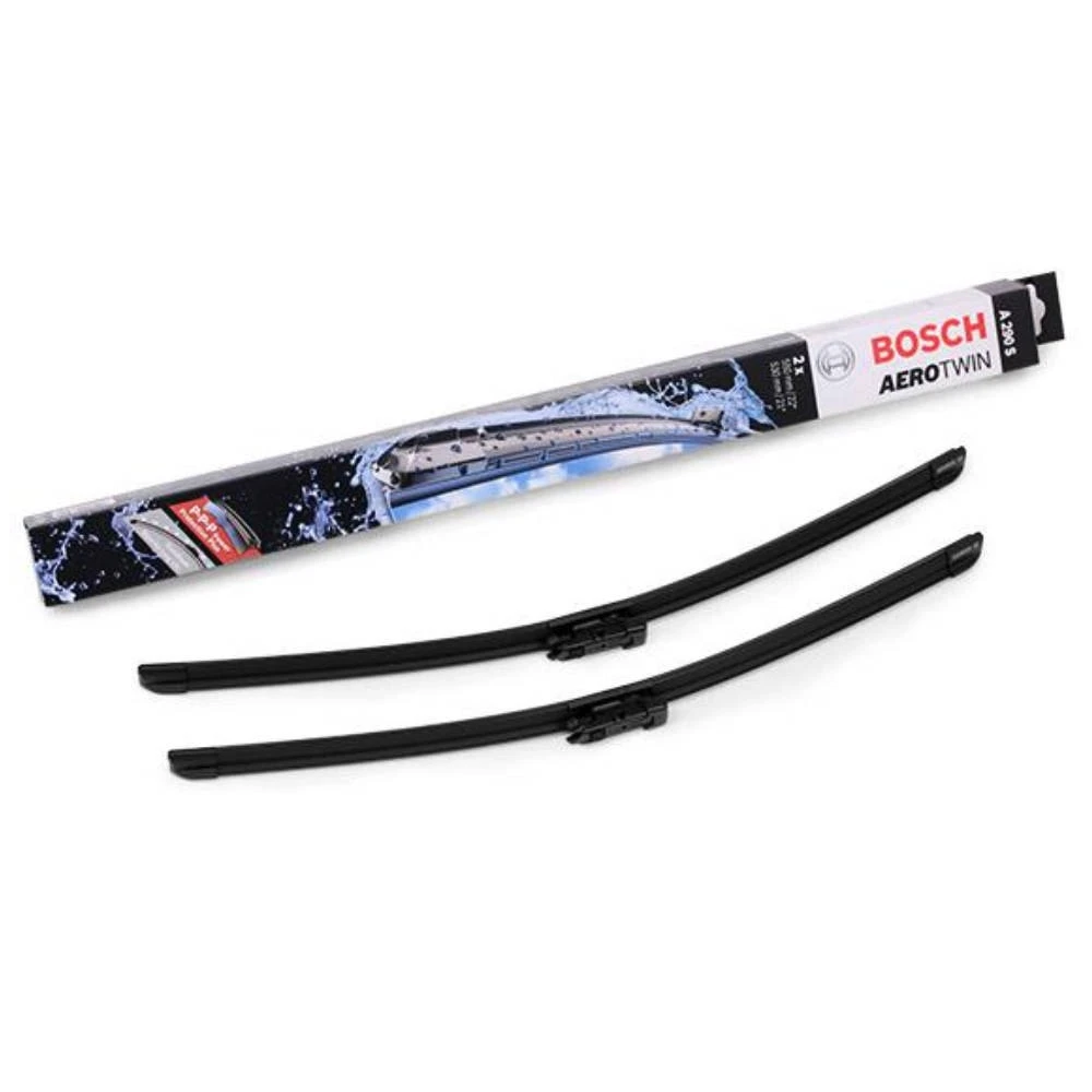 Pióra wycieraczek przód BOSCH AeroTwin A290S (2 szt) do Audi TT 8J coupe (2006, 2007, 2008, 2009, 2010, 2011, 2012, 2013, 2014, 2015). Producent: BOSCH. Długość: Lewa - 550 mm, Prawa - 530 mm. Zawartość: 2 szt. Miejsce montażu: Pióra wycieraczek przód.