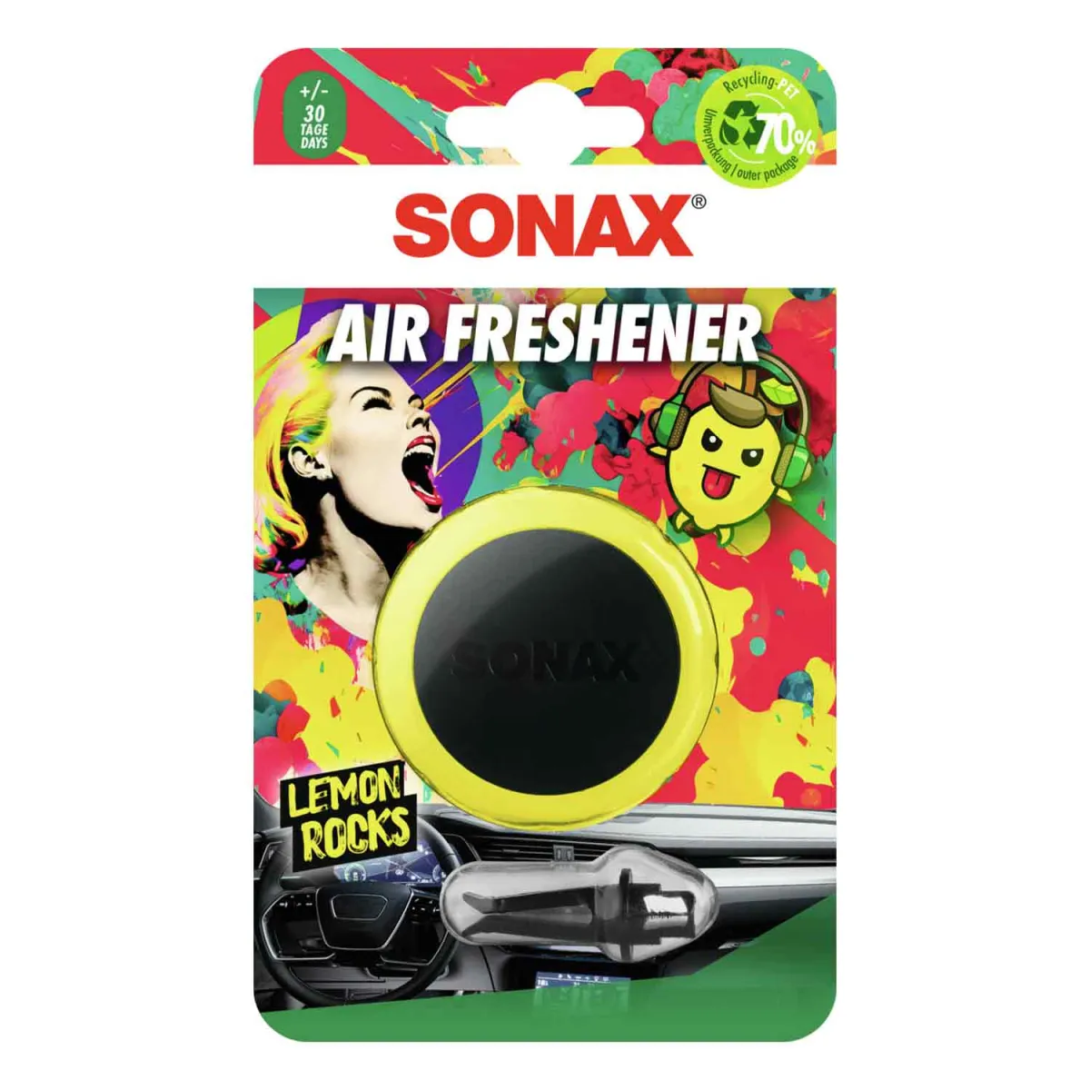 SONAX Air Freshener to wysokiej jakości odświeżacz samochodowy przeznaczony do montażu w kratce nawiewu, dzięki czemu zapach jest równomiernie rozprowadzany po całej kabinie. Produkt został zaprojektowany z myślą o kierowcach, którzy oczekują szybkiego działania, wygody oraz trwałego efektu. Kompaktowa konstrukcja i solidne wykonanie sprawiają, że odświeżacz idealnie komponuje się z wnętrzem nowoczesnych samochodów, nie zajmując dodatkowej przestrzeni.